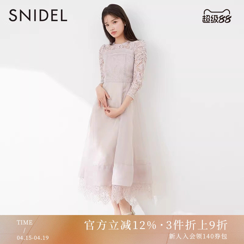 SNIDEL春夏款法式淑女蕾丝镂空雪纺长袖连衣裙SWFO231105