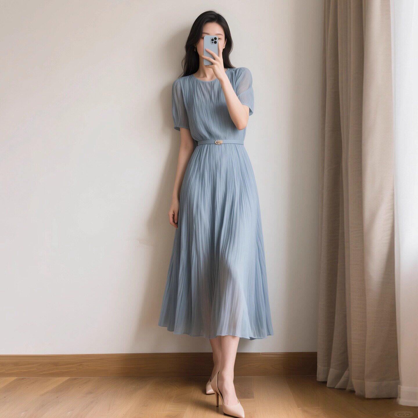 - 韩版中长款雪纺连衣裙
