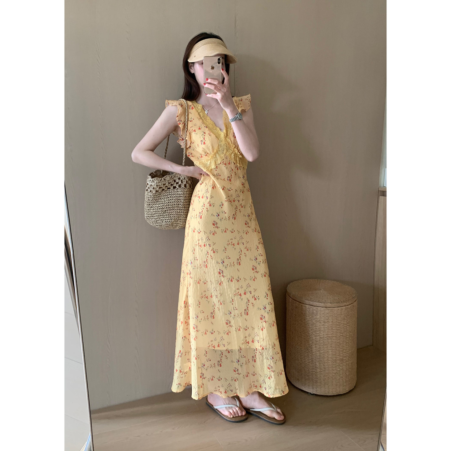 - 碎花雪纺连衣裙中长款