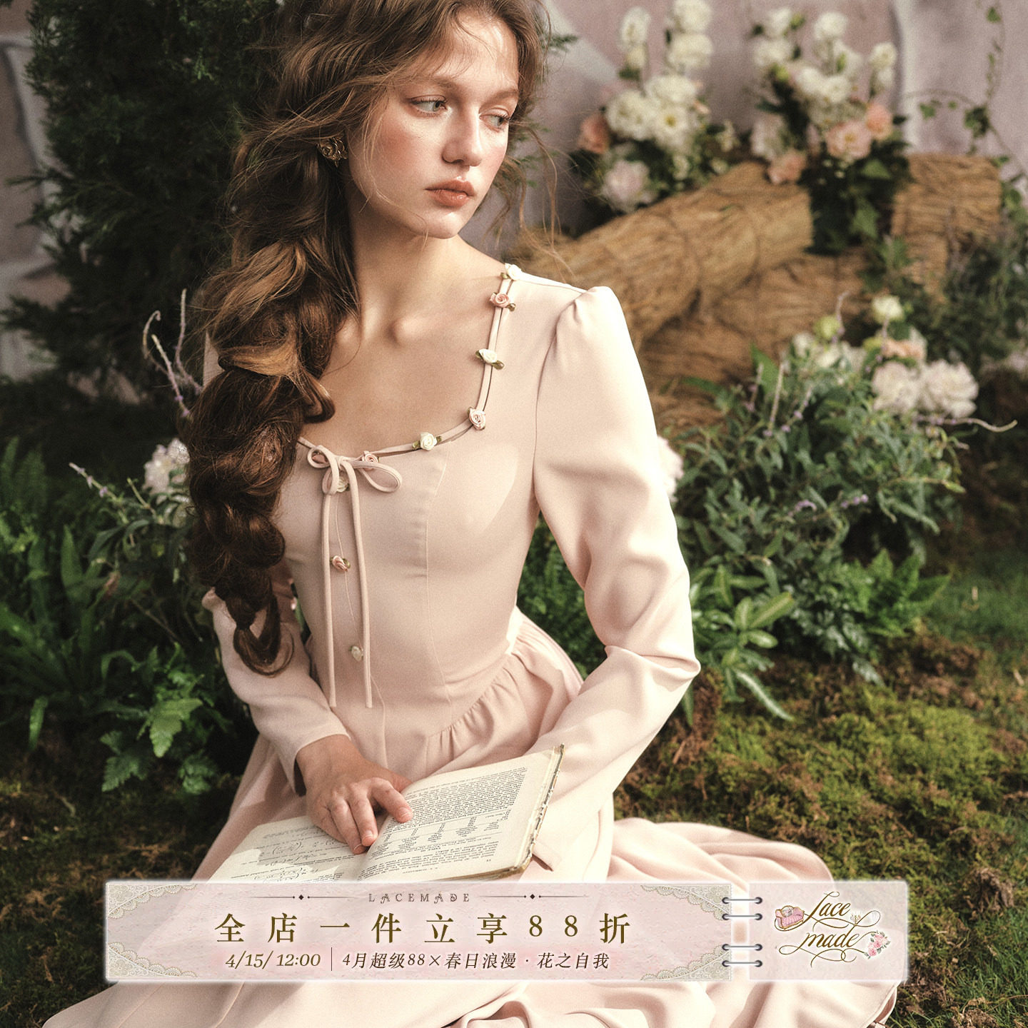 LaceMade 蔷薇日记 法式复古淑女风日常通勤高智感淡粉色连衣裙秋