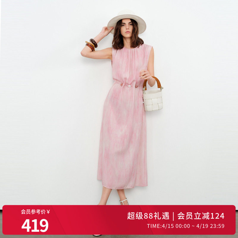 婉甸2026夏季新品晕染无袖淑女A字裙度假直筒裙连衣裙1252N28GS4
