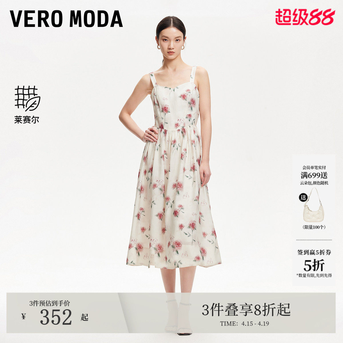 Vero Moda连衣裙女夏季莱赛尔天丝印花设计吊带A字淑女风