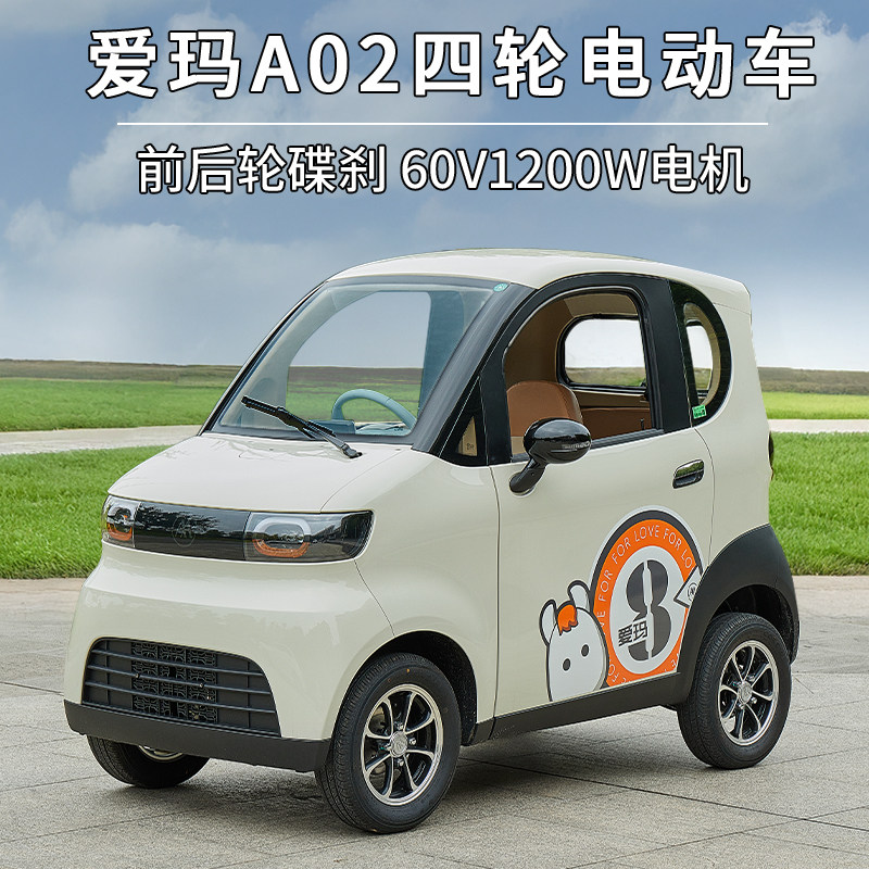 爱玛A02四轮电动车成人代步车两门三座四轮碟刹方向盘操作全封闭