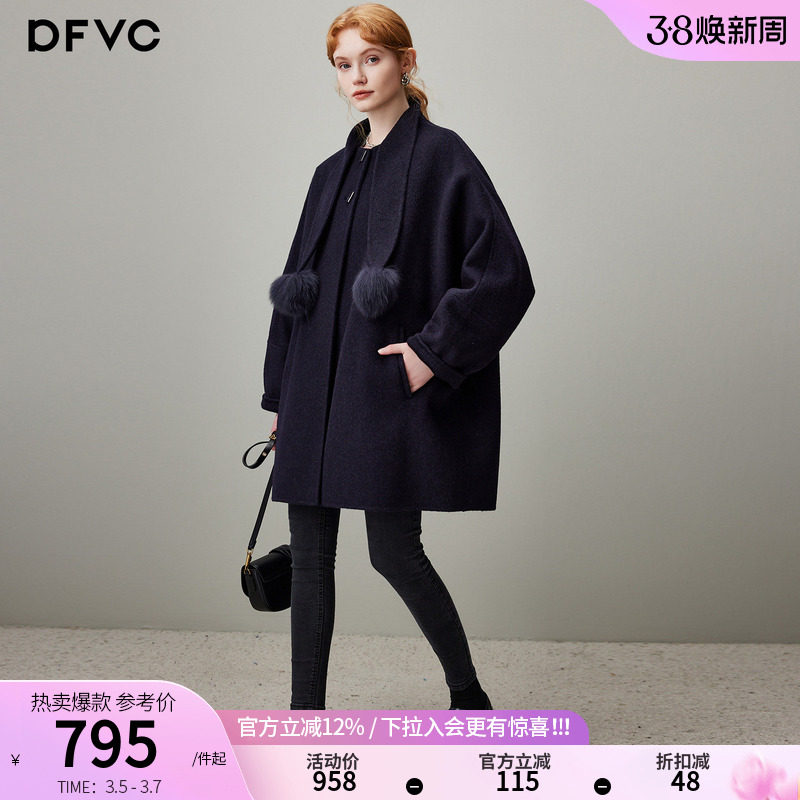 dfvc韩版中长款绵羊毛呢外套女2026年春季新款宽松双面呢羊绒大衣