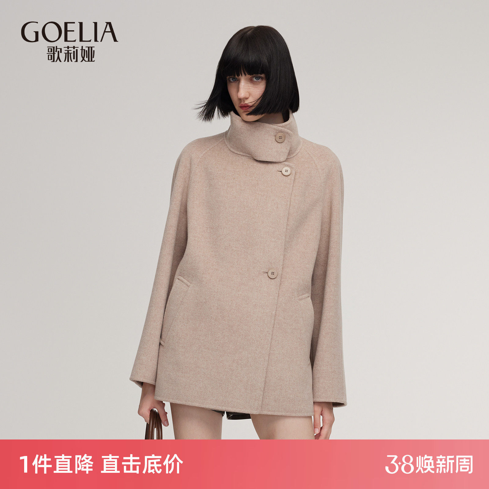 首降5折|歌莉娅羊毛羊绒大衣女2025新款冬季立领小个子毛呢外套
