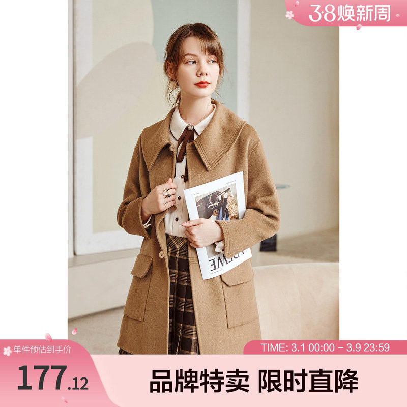 MULVAN【现货5折】 西装毛呢外套女短款秋冬双排扣气质呢子大衣