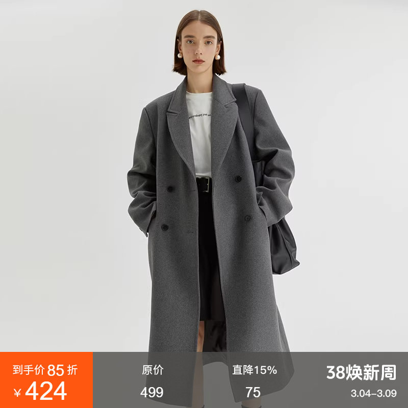 100%澳洲美丽诺羊毛LILY2025冬新款轻量双面呢毛呢大衣外套女长款