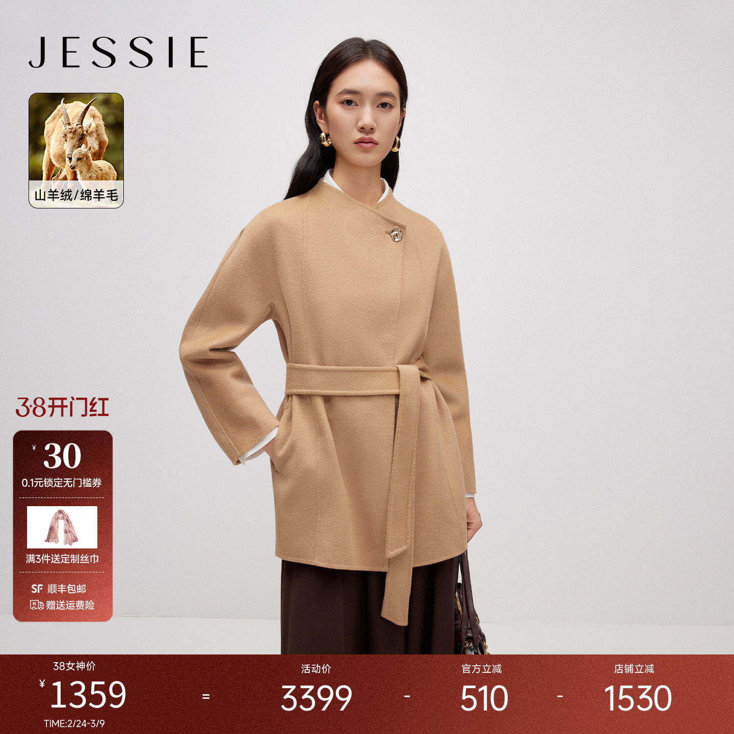 - 女士羊绒大衣
