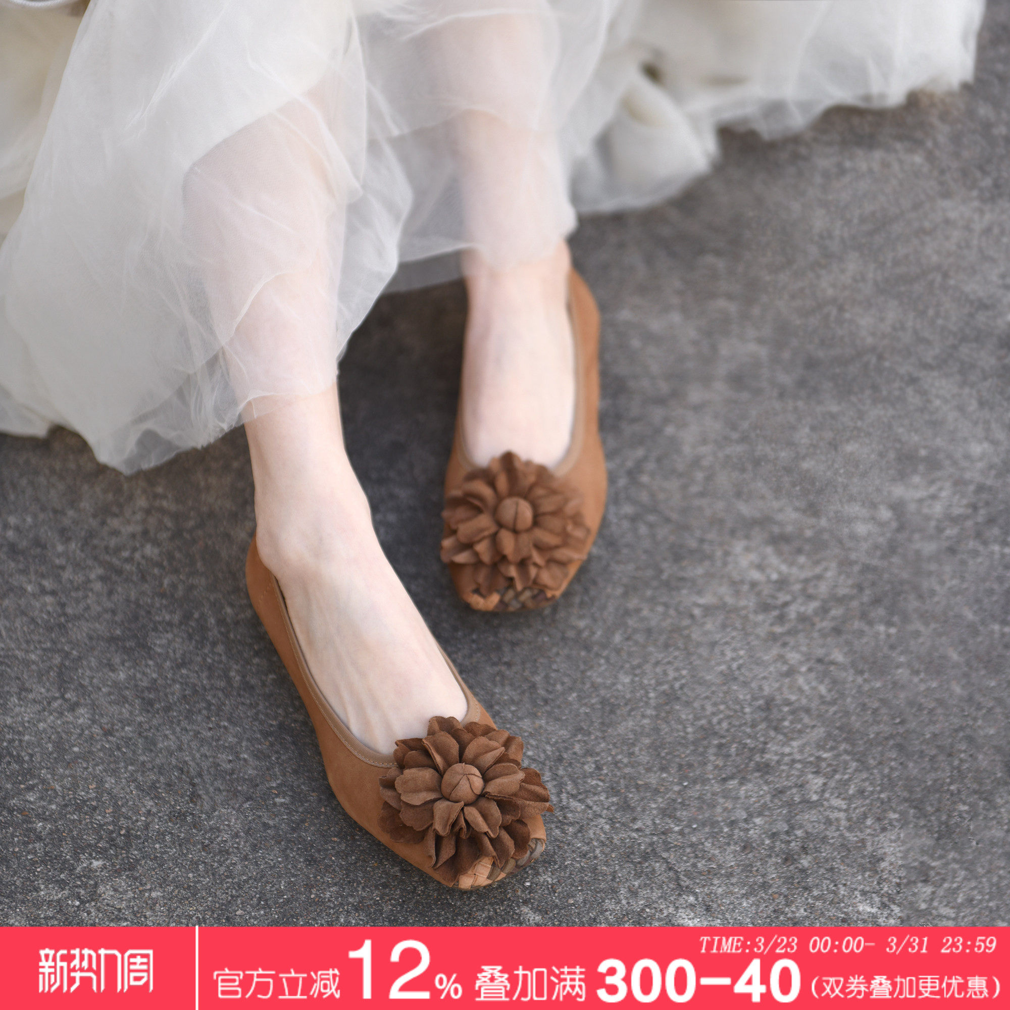 Artmu阿木原创复古花朵单鞋女2026春季新款瓢鞋软底豆豆鞋奶奶鞋