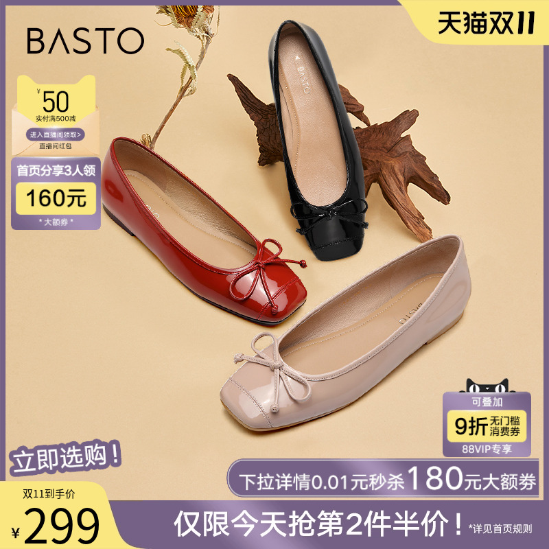 【小樱桃】百思图25秋新款红色单鞋浅口船鞋瓢鞋平底女鞋B8013CQ5