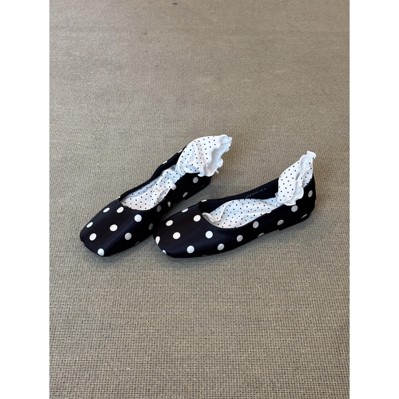 法式方头波点浅口单鞋女2026春季平跟软底一脚蹬芭蕾舞鞋通勤瓢鞋