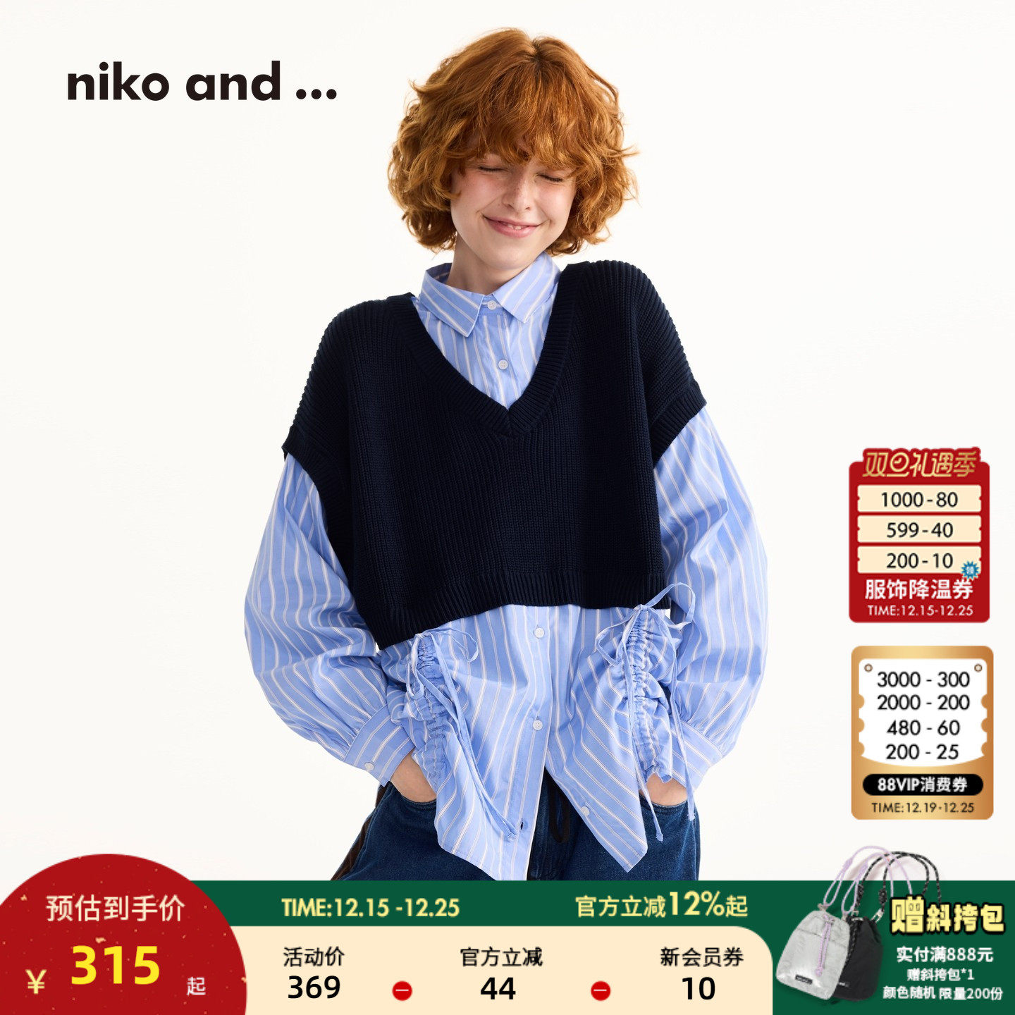 niko and ...衬衫女2025秋冬新款含棉设计感假两件长袖上衣594979