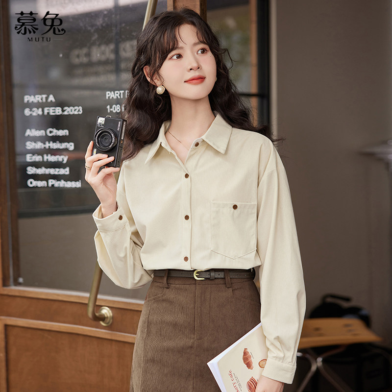慕兔复古港味灯芯绒衬衫女2025秋新款宽松慵懒风气质休闲长袖上衣