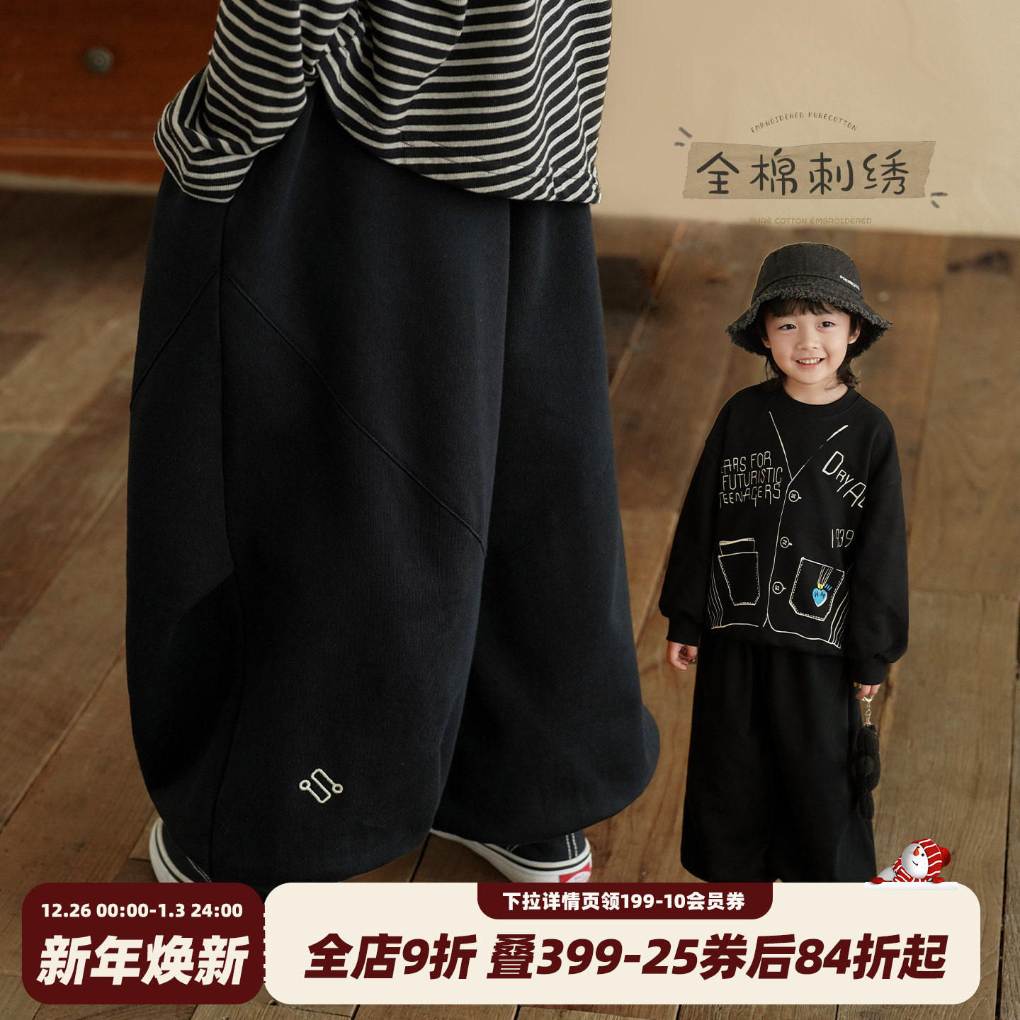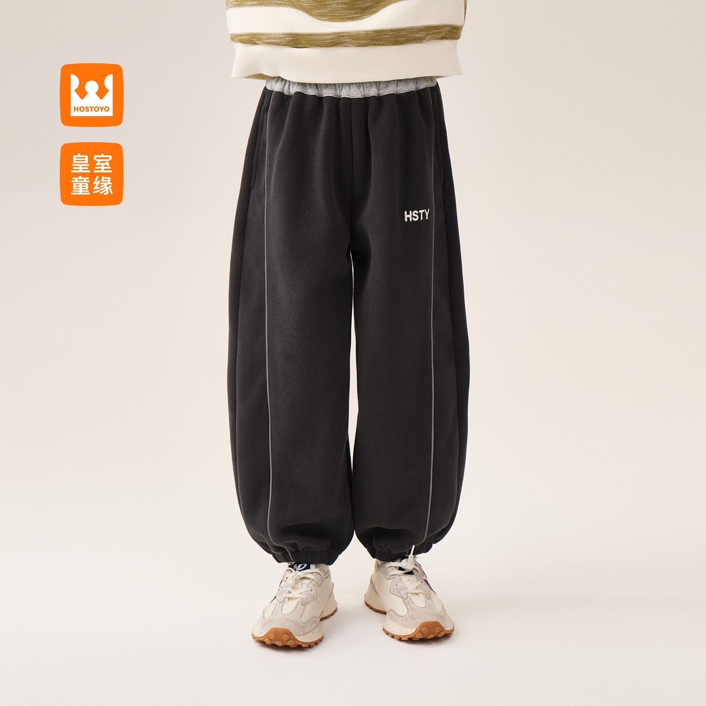砚台家男童纯棉加绒运动裤秋季新款冬装儿童宽松防风裤厚黑色卫裤