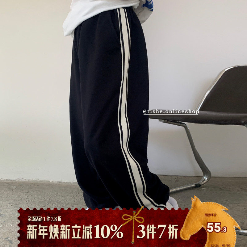 男童春秋黑色直筒运动卫裤2025新款学生儿童秋季阔腿宽松百搭裤子