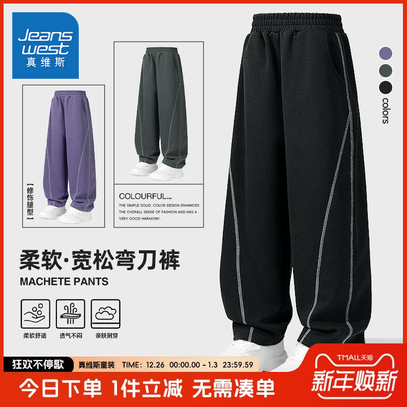 真维斯童装男童裤子春秋款儿童秋季时髦宽松运动裤大童潮酷弯刀裤