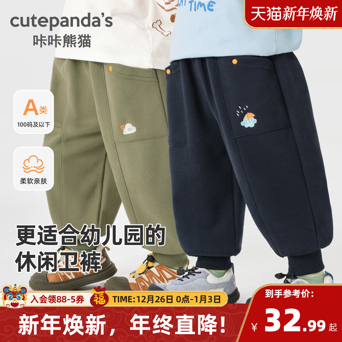 咔咔熊猫宝宝裤子秋款儿童运动校园裤宽松早秋季男童长裤婴儿童装