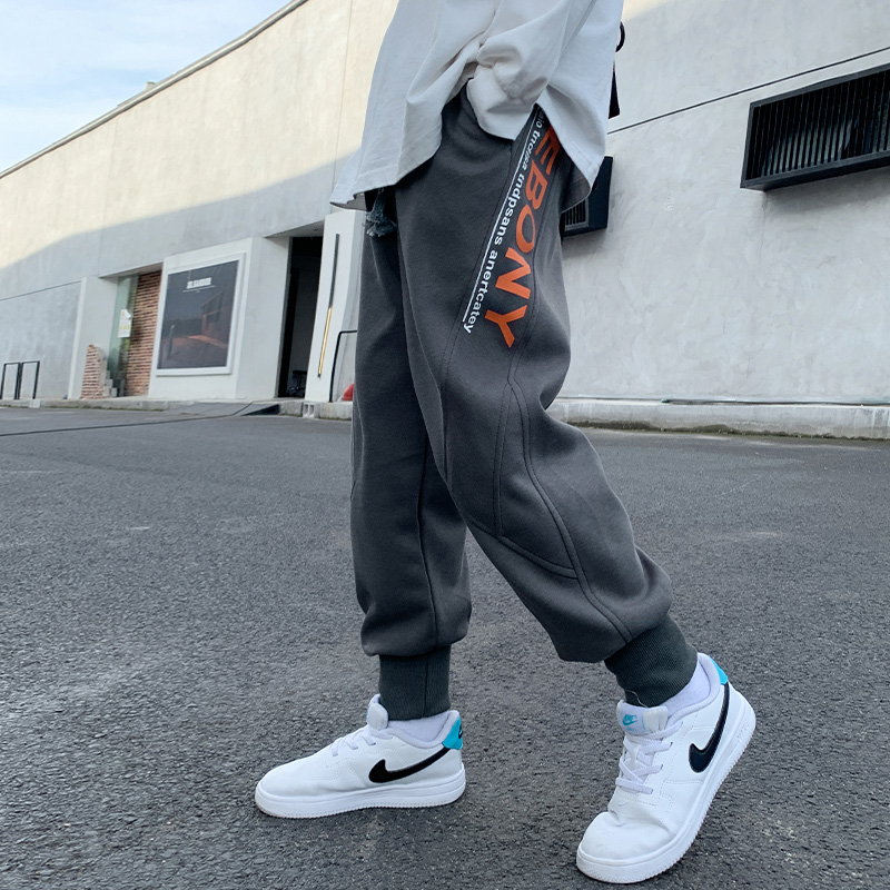 男童裤子秋季新款字母个性印花休闲裤加绒宽松运动裤秋冬束脚裤潮