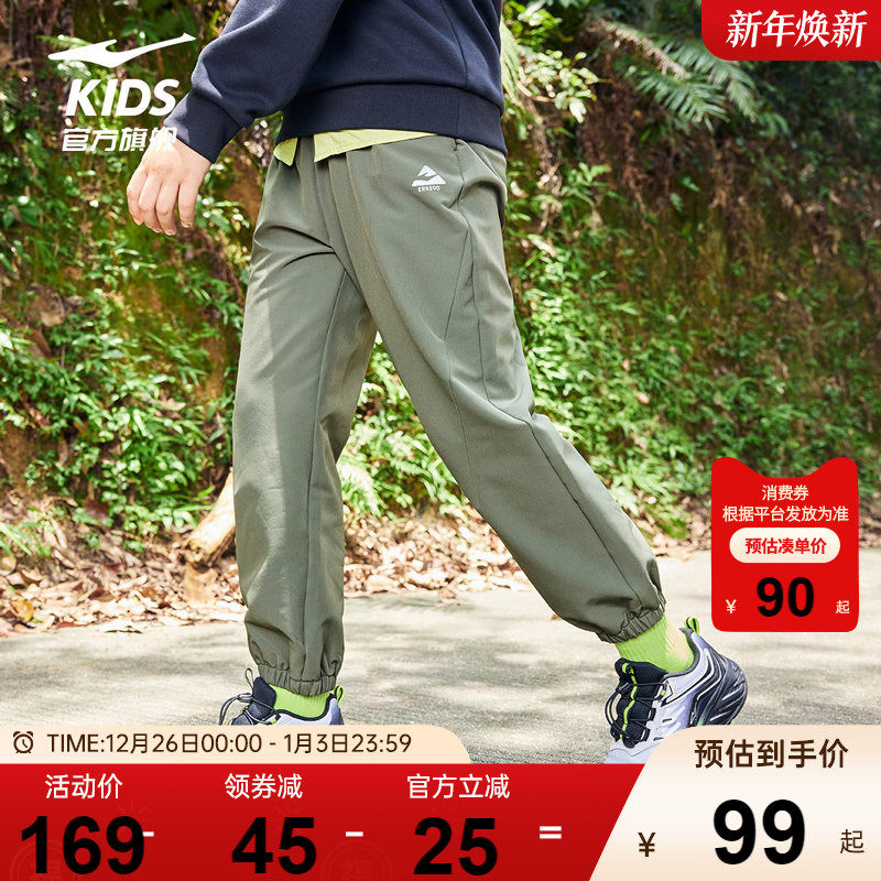 鸿星尔克童装男童运动裤秋季新款户外工装裤宽松长裤潮流休闲裤子