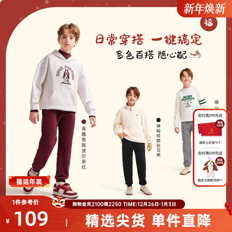 暇步士童装男童裤子2025秋季新款中大童运动卫裤儿童休闲宽松长裤