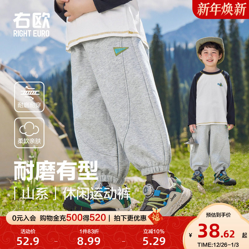 右欧男童运动裤女童裤子卫裤百搭宽松春秋季新款童装儿童束脚长裤
