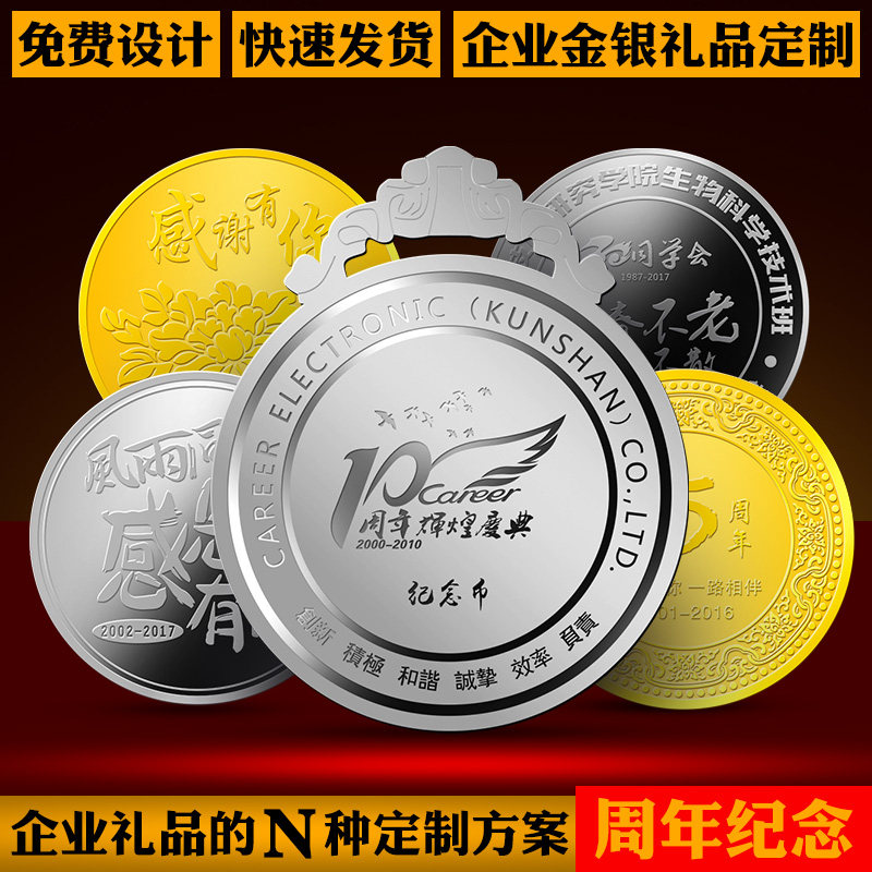 高档纪念年银币定制纯银周庆金员工入职币定刻做摆件开业logo礼品