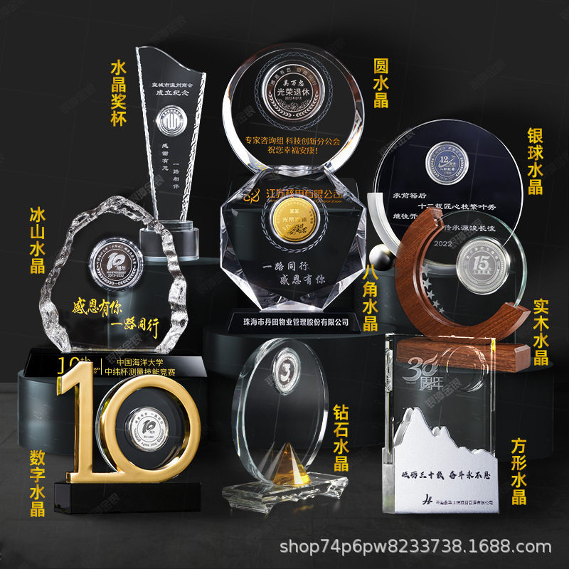 快速发货水e晶奖杯999纯银定制定做银币光荣退休周年颁奖荣誉纪念