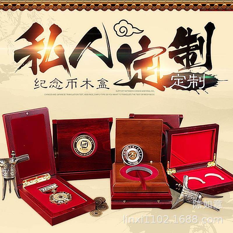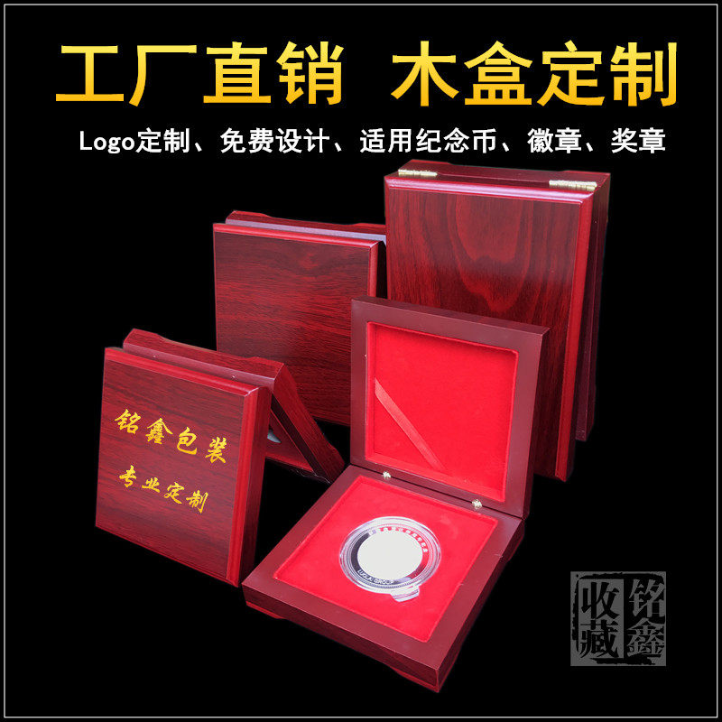 木盒纯银纪念币徽章盒面 银币胸章奖章盒制作 奖牌木质盒子定稿