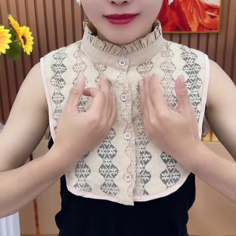 新款2025秋冬花边蕾丝假领打底百搭衬衣立领毛衣装饰高领纯色