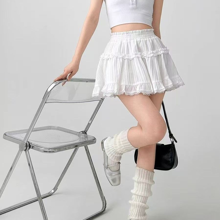 法式复古芭蕾风白色蛋糕裙女2025秋冬季高腰花边蕾丝半身裙短裙