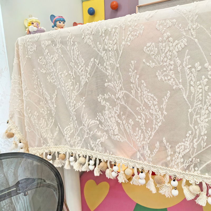 奶油黄高级感桌布浮雕绒毛茶几桌垫防灰尘小香风餐布花边蕾丝盖布