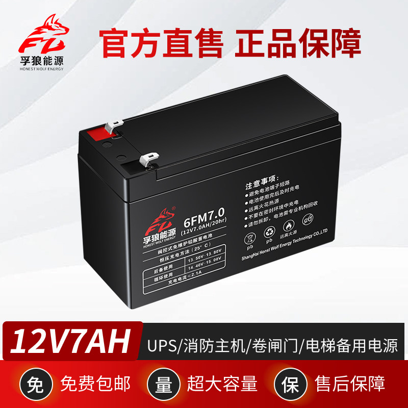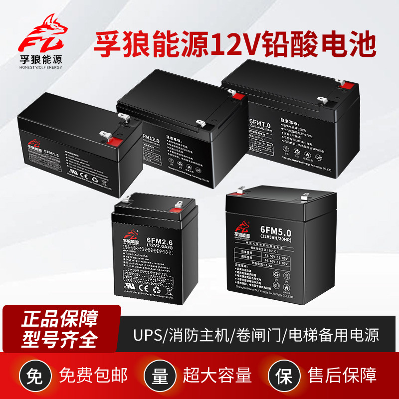 孚狼12V蓄电池1.3Ah2.6A4.5A7A12A音响消防主机UPS电梯卷闸门电瓶
