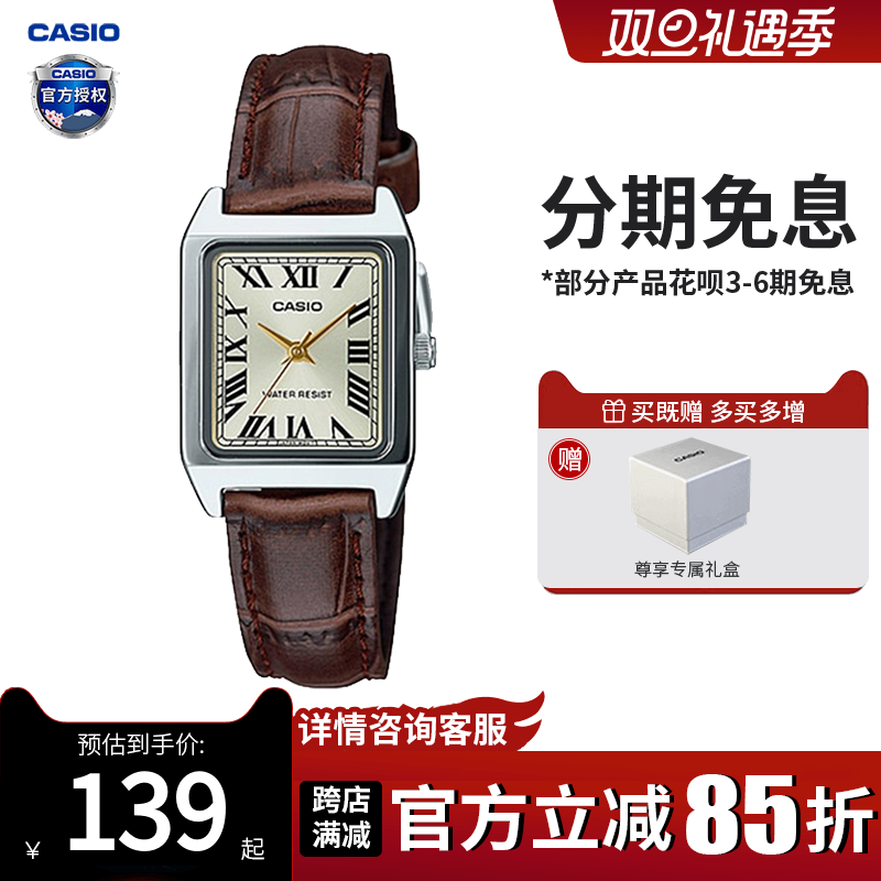 卡西欧女生手表复古小方块非机械石英女士休闲商务款LTP-V007L-9B