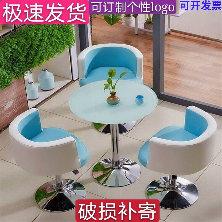 洽谈桌椅组合一桌三椅奶茶店休闲椅接待会客小圆桌茶几钢化玻璃桌