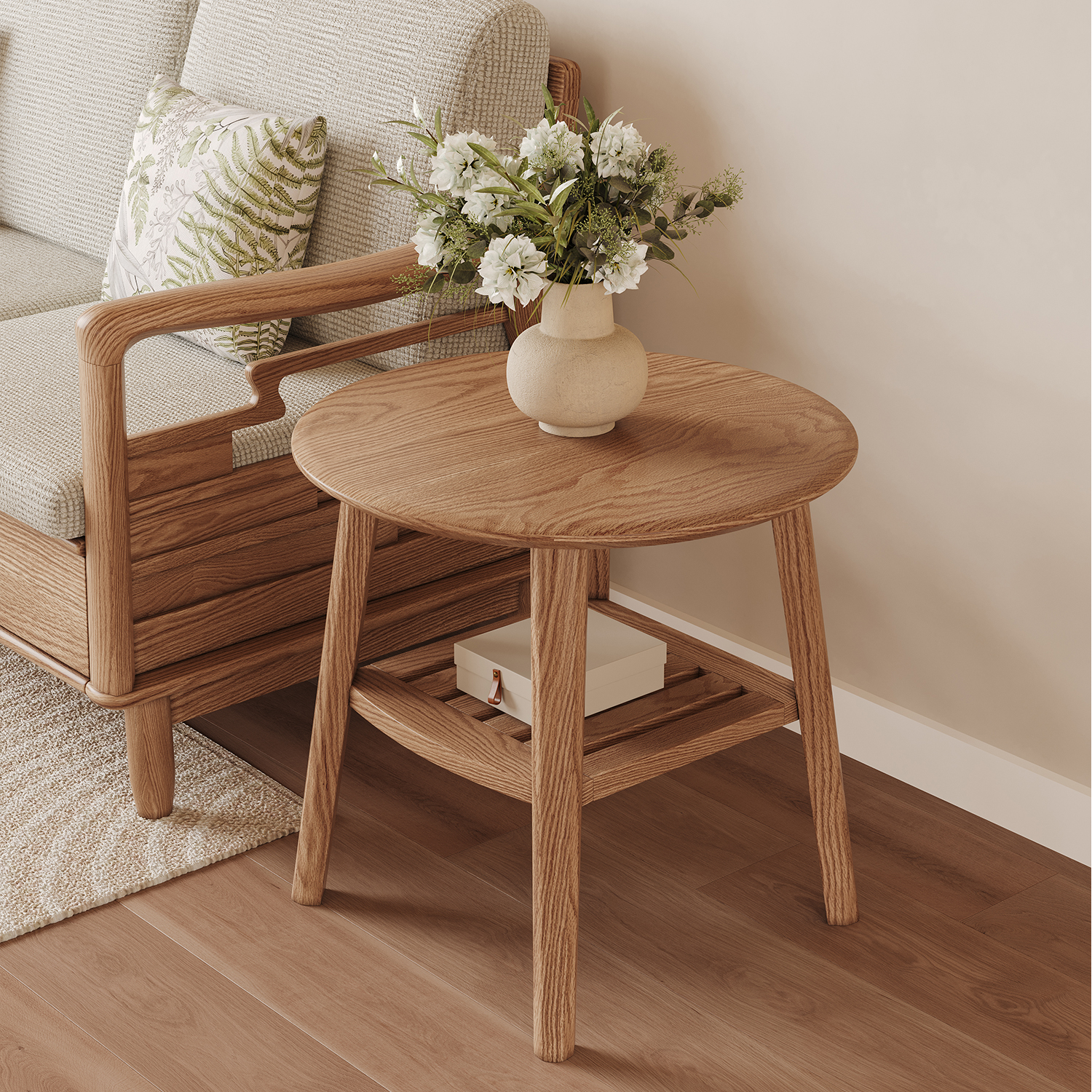sort中国GASKA双层实木边几钢化玻璃小圆桌茶几客厅卧室复古FONO
