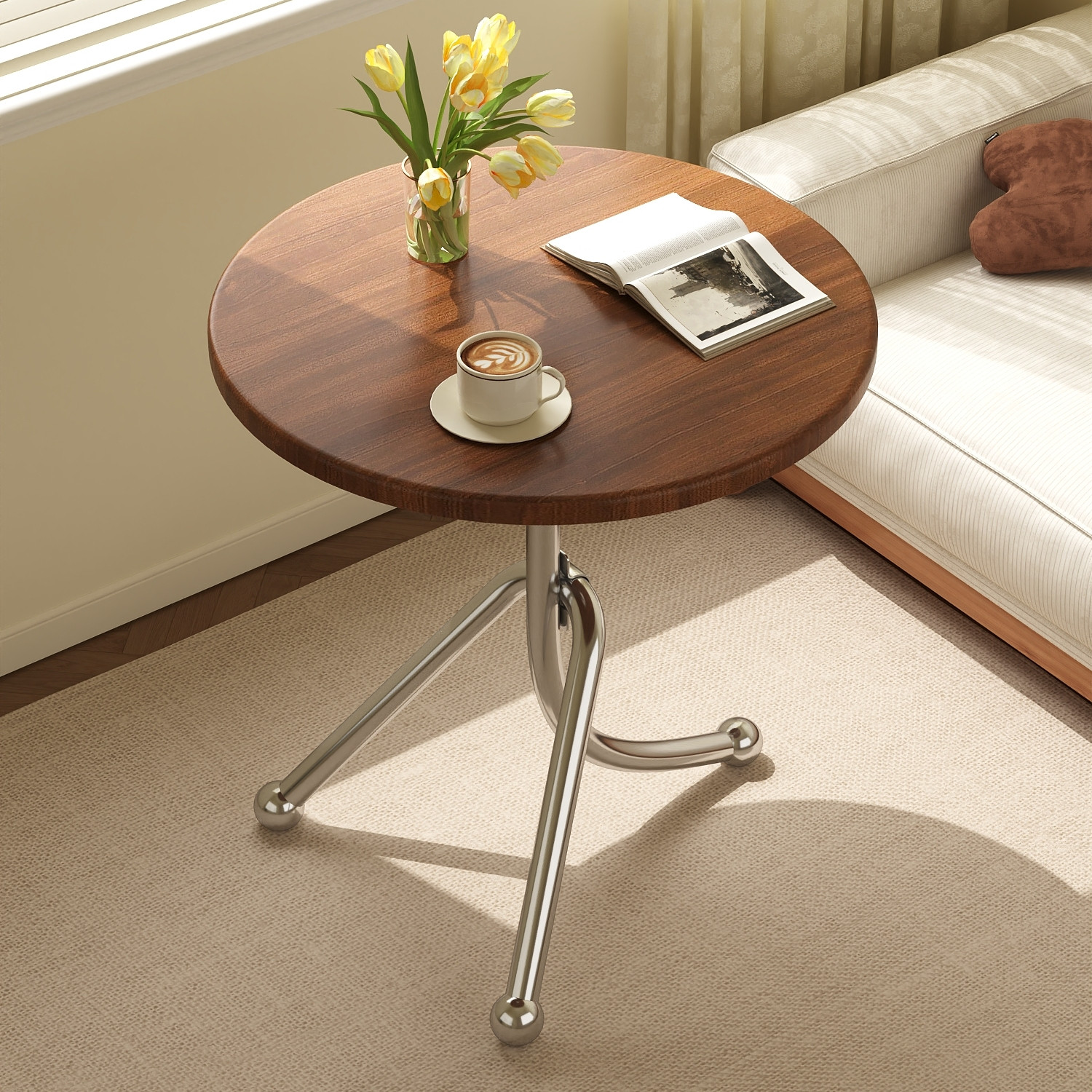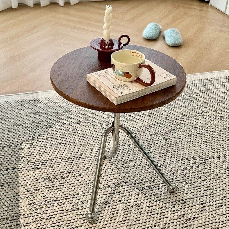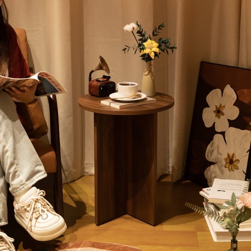 胡桃木小圆桌茶几简约现代创意小户型沙发边几中古休闲阳台小桌子