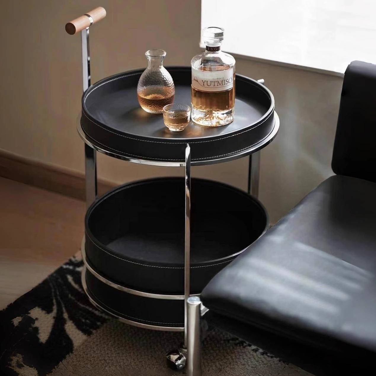 需定制中古可移动零食小推车简约现代沙发边几圆桌茶几床头柜置物