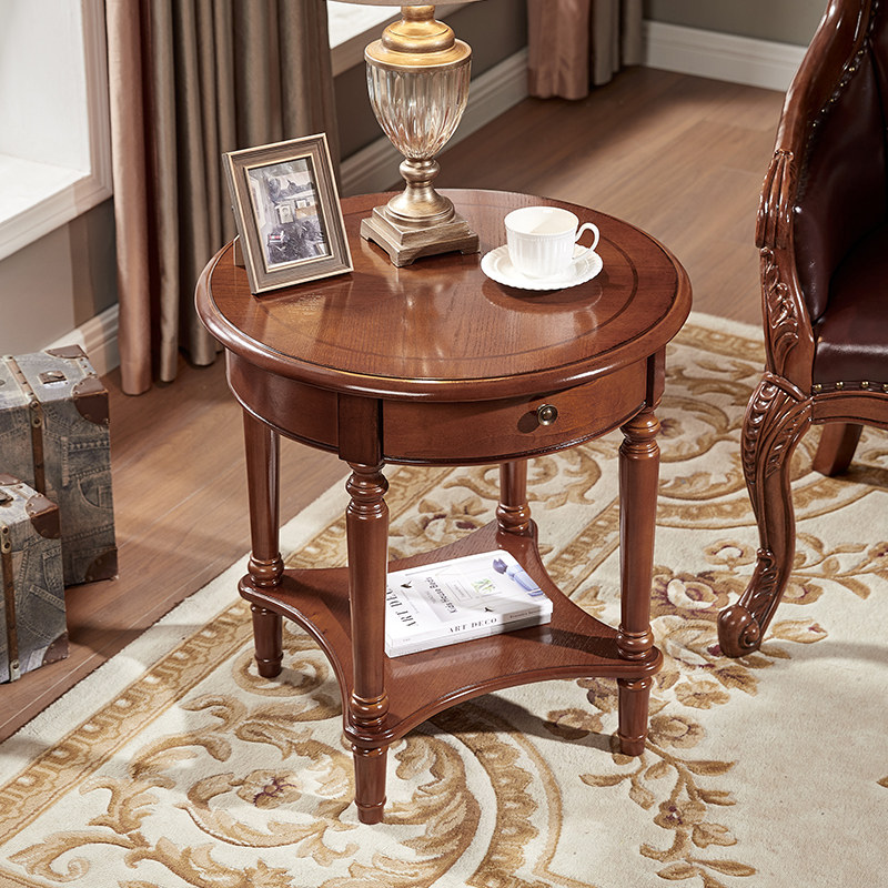 美式实木边几沙发可移动休闲阳台小圆桌茶几小边几休闲桌客厅桌子