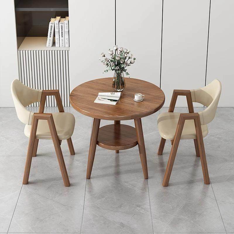 实木餐桌现代简约吃饭桌子家用小户型洽谈桌椅组合阳台小圆桌茶几