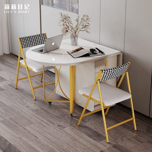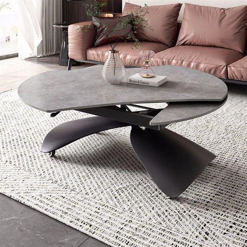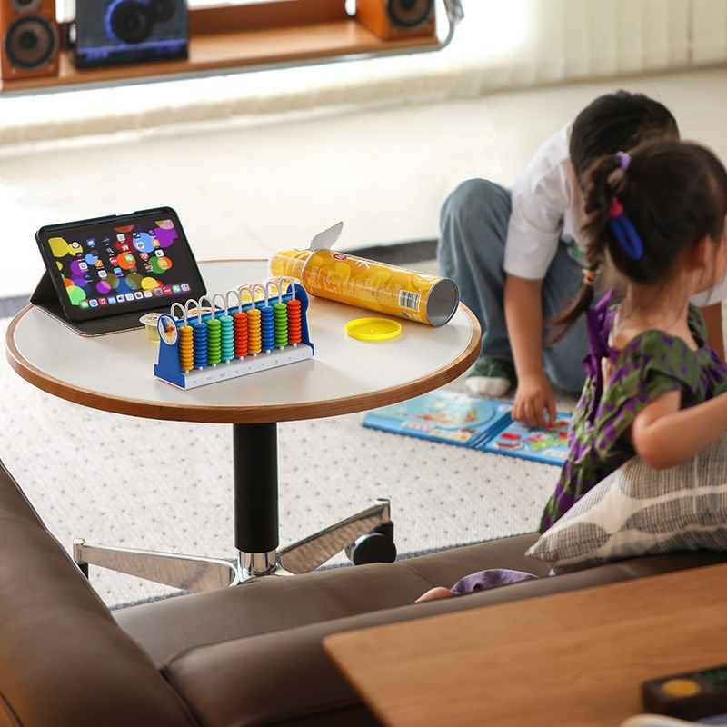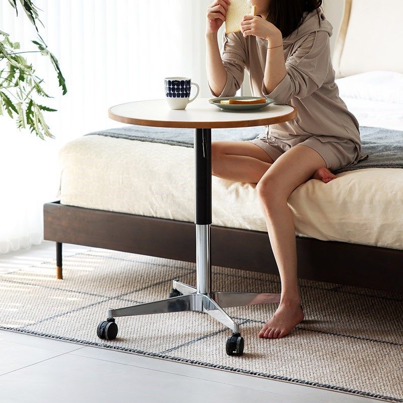 舒梵随行茶几/可升降移动多功能小圆桌/中古洞石岩板咖啡桌边几