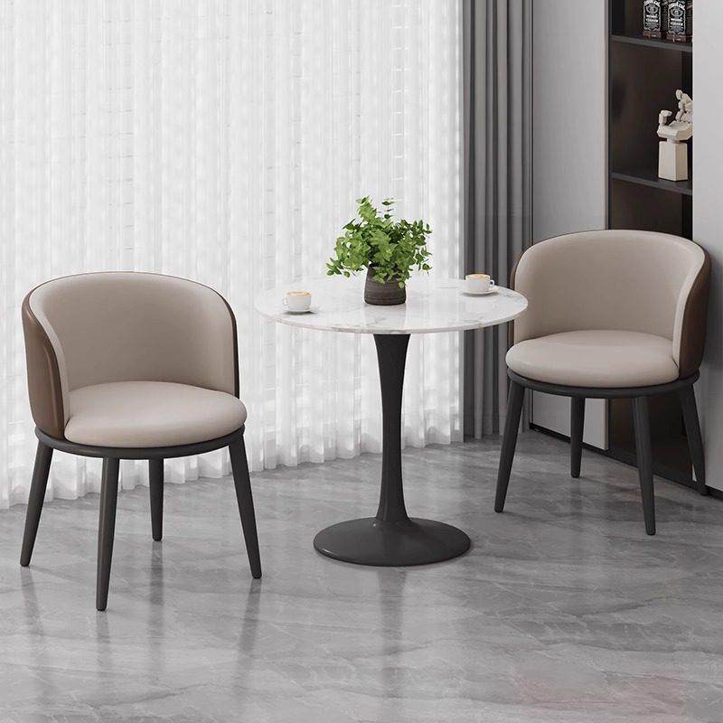 意式极简灰色岩板小圆桌茶几轻奢售楼处4S店商务接待洽谈桌椅组合