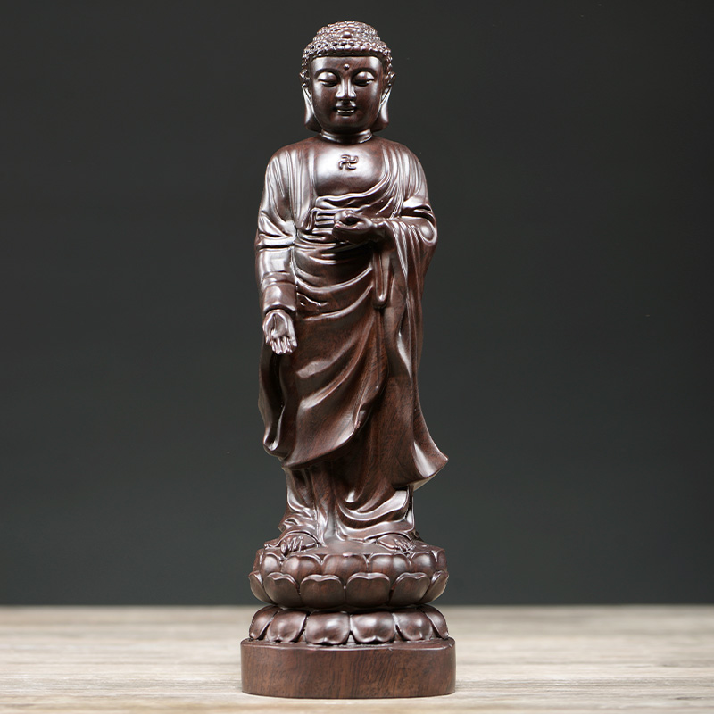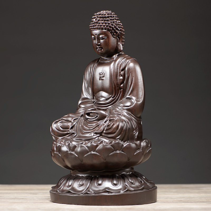 黑檀木雕大日如来本命佛摆件释迦摩尼佛像阿弥陀佛实木雕刻工艺品