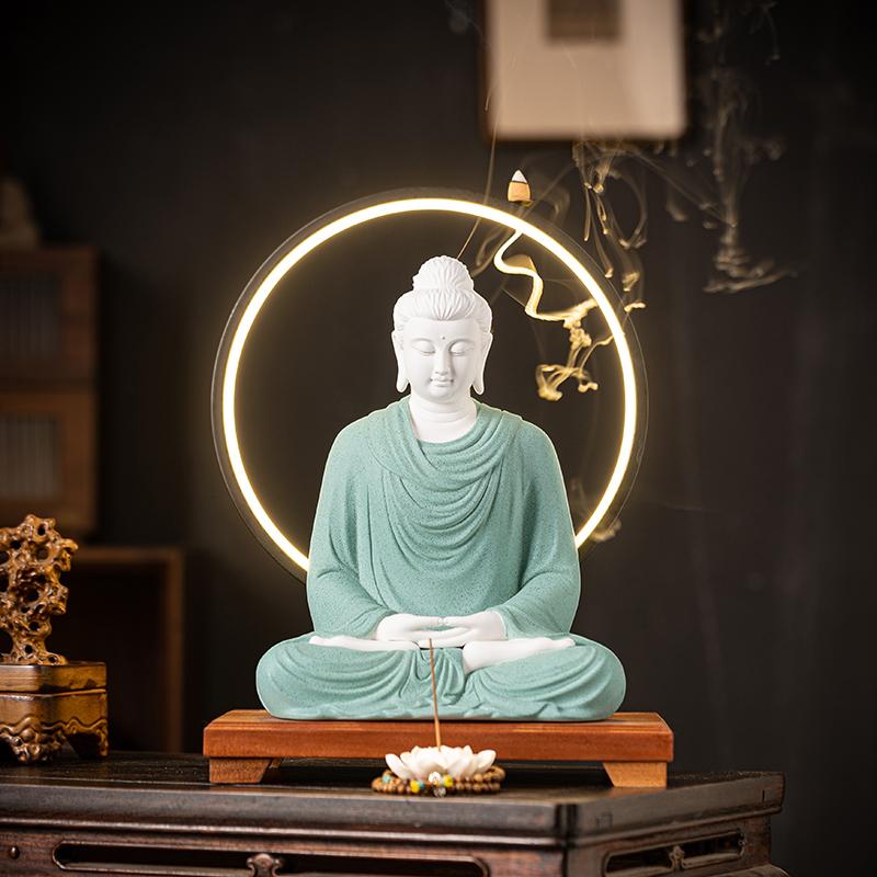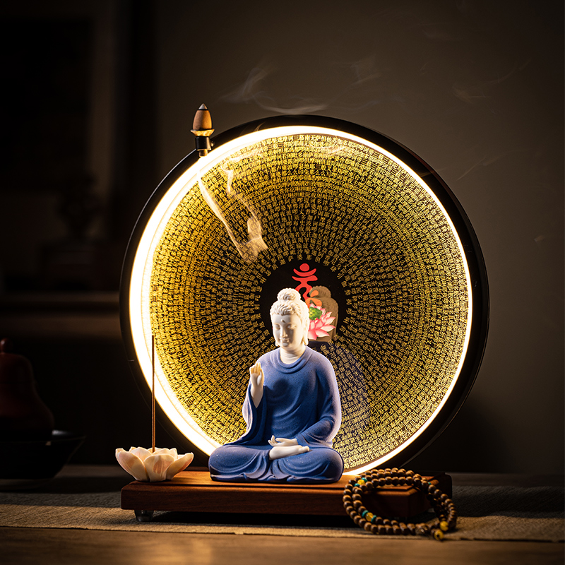 新款倒流香炉释迦摩尼佛像如来佛祖阿弥陀佛客厅玄关灯摆件装饰品