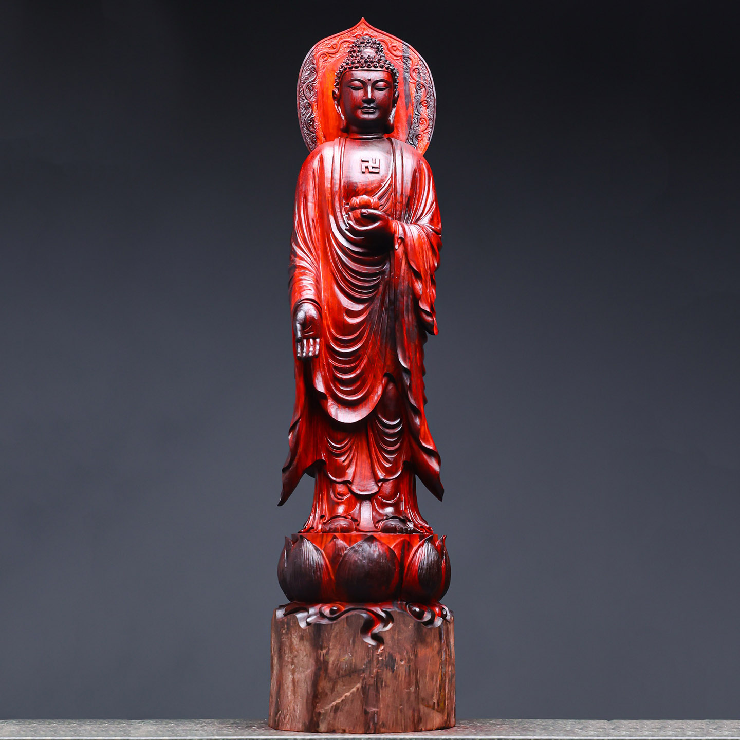红花梨木雕释迦摩尼佛像摆件实木雕刻大日如来佛祖家用供奉工艺品