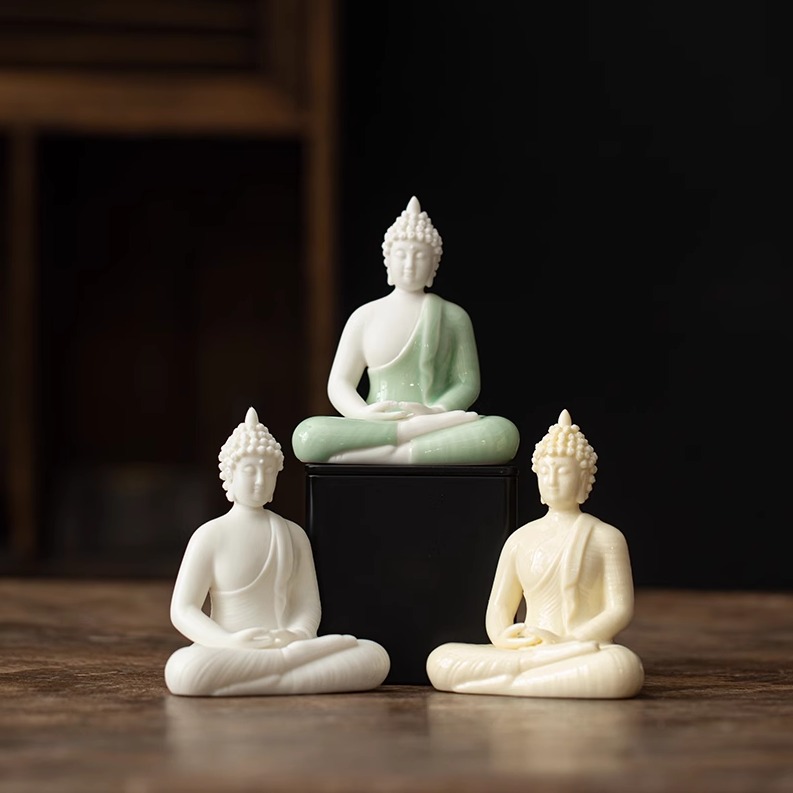 陶瓷释迦摩尼佛像摆件小号如来佛祖禅意家居茶室博古架装饰工艺品