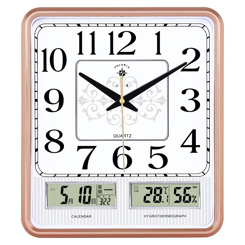 北极星方形客厅静音挂钟现代简约时尚电子钟表创意家用日历石英钟