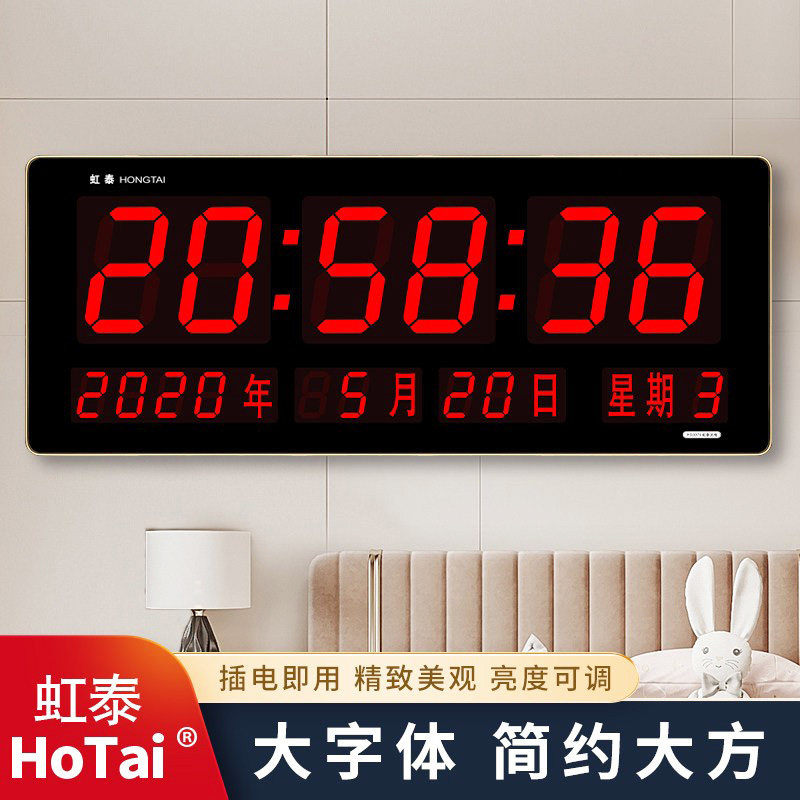 虹泰万年历电子钟家用客厅长方形挂墙时钟led大屏数字夜光闹钟表