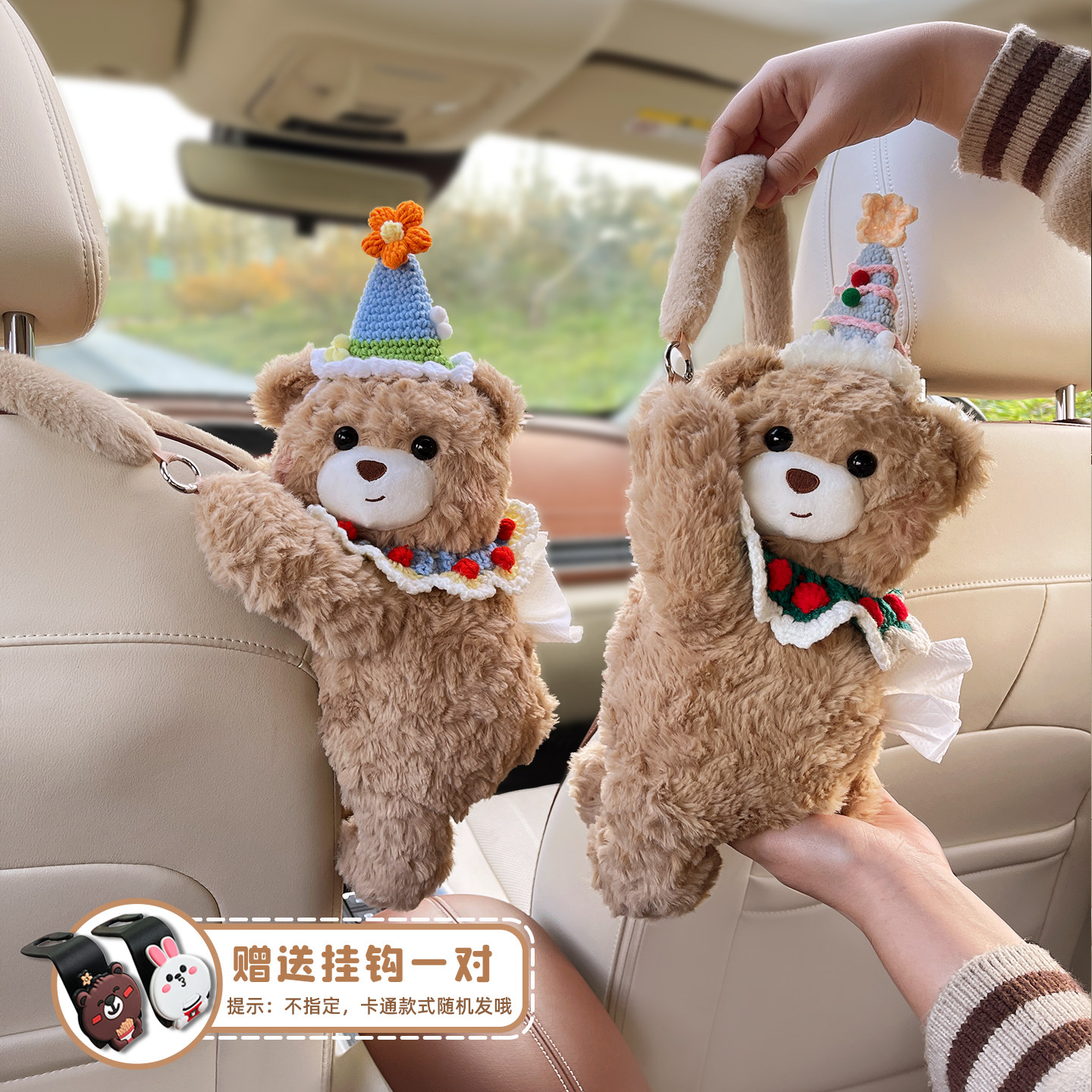 车载纸巾盒椅背挂袋可爱小熊汽车座椅挂式创意纸抽盒收纳车内饰品