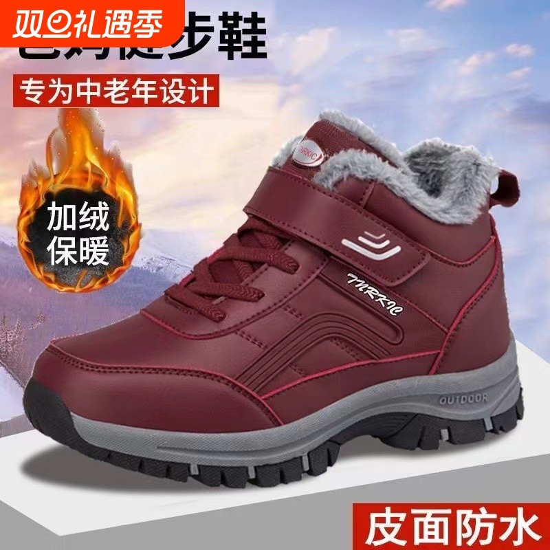 张凯丽老人鞋女冬季加绒防水妈妈鞋中老年防滑雪地靴运动健步鞋男