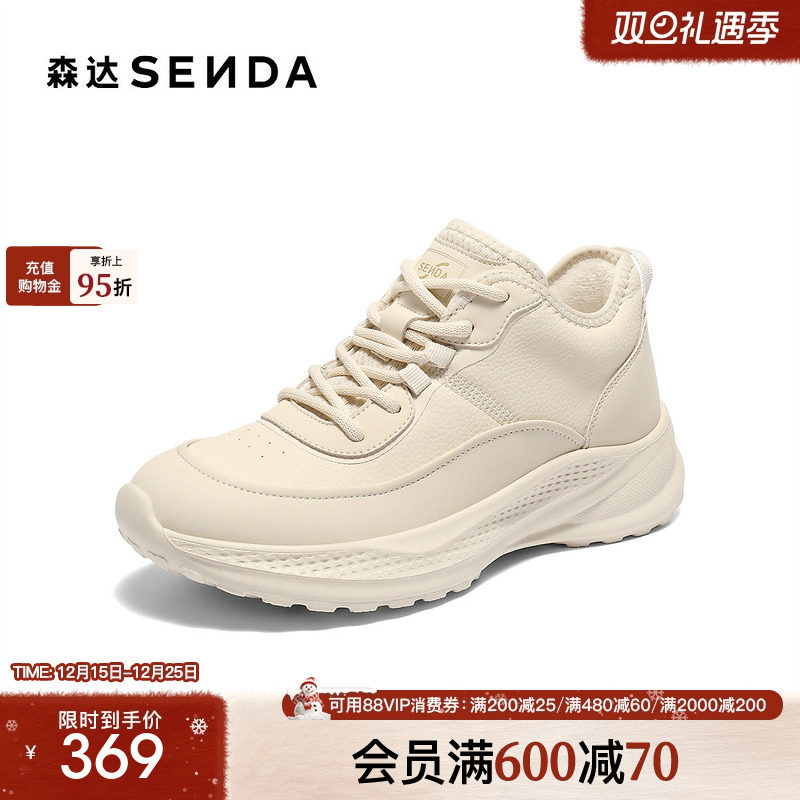 森达防滑健步鞋女商场同款中老年加绒休闲鞋保暖轻便妈妈鞋XVA01